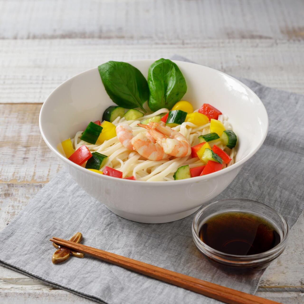なめらか食感のうどんです。温めても冷やしても、お好みの食べ方でどうぞ。